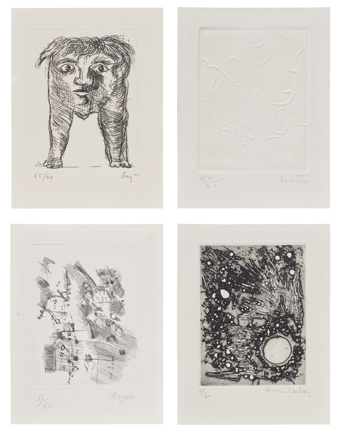 Including works by Enrico Baj; Gianni Bertini; Camille Bryan; Marie Carlier; Bill Copley; Corneille; Roberto Crippa; Lucio del Pezzo; Hisao Domoto; Ferró; Lucio Fontana; Roland Giguére; Henri Ginet; Yozo Hamaguchi; Stanley William Hayter; Horst-Egon Kalinowski; Jacques Lacomblez; Josaku Maeda; Hans Meyer-Petersen; and Jean Tinguely