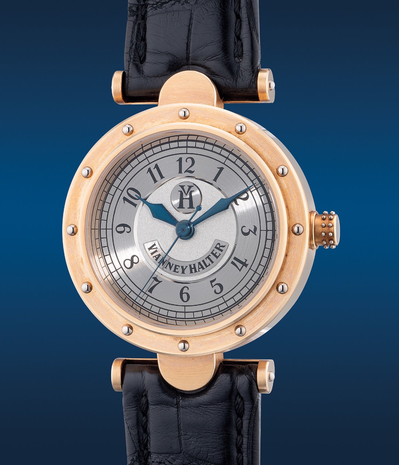 Swiss | 1994Vianney Halter seeks to change how we view time and creates mechanical timepieces with retro-futuristic innovative timekeeping displays. One of his most famous models, the groundbreaking Anitqua, takes inspiration from the nineteenth century with an industrial, steampunk aesthetic, using a case with four separate dial displays that wowed collectors when it was first launched in 1998. For some of Halter's creations, literature — in particular that of Jules Verne — has been a source of inspiration. Halter continues to create futuristic case designs and works with complicated movements.