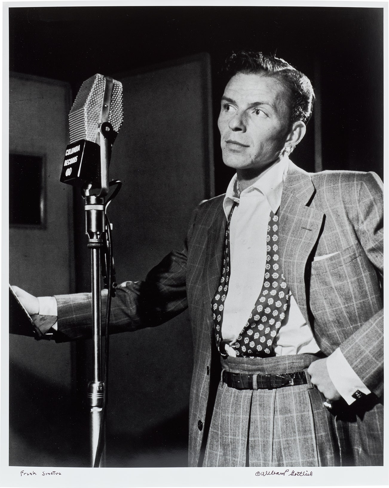 titled 'Frank Sinatra' lower left; signed 'William Gottlieb' lower right