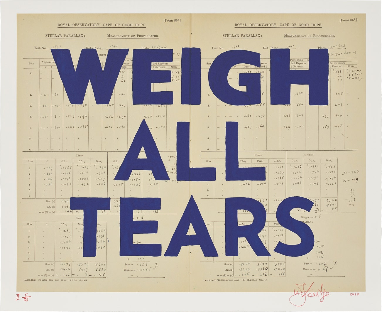 共有70版,由約翰尼斯堡Artist Proof Studio出版,此為未裱第5版。