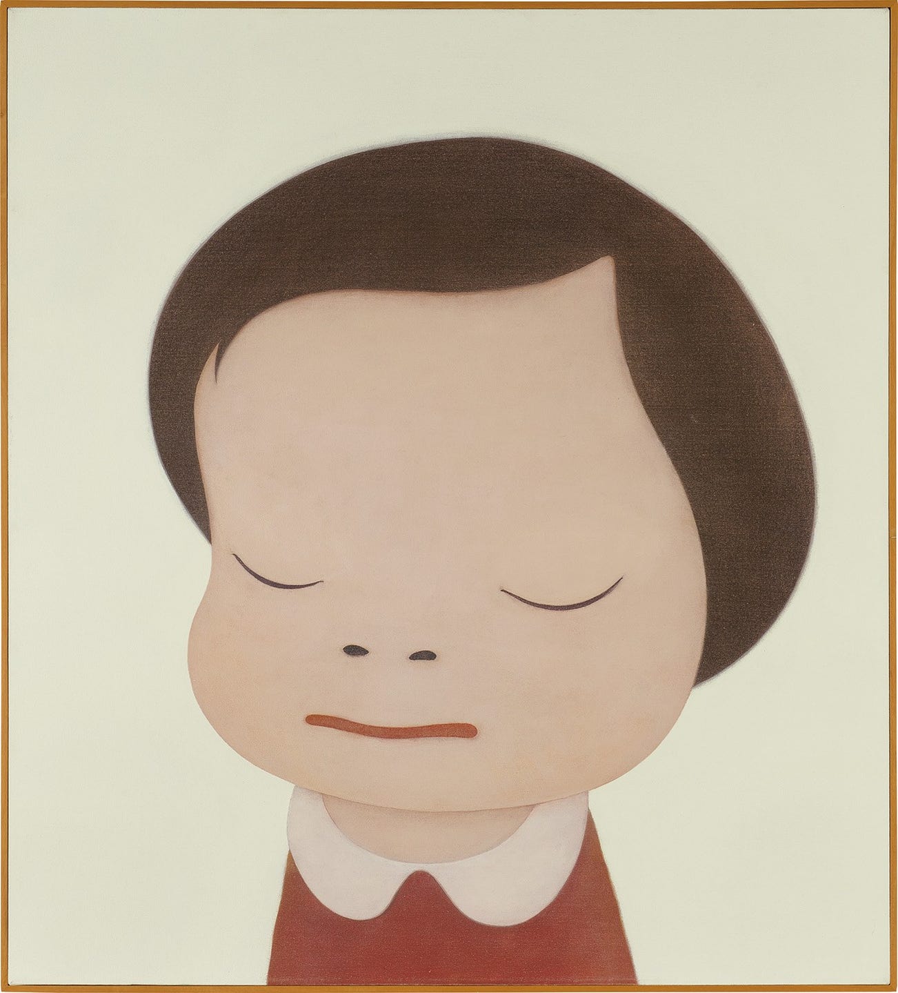 Executed in Yoshitomo Nara’s signature style, Little Thinker, 2000, commemorates the meditative faculty of imagination and the individual. The protagonist is one of Nara’s most enduring motifs, a child, whose eyes are softly closed in a state of gentle reflection against a creamy, luminescent background. The child is ambiguously gendered, a typical tactic of the artist’s which he explained by noting, “I don’t think of her as a girl because it is a neutral image. It is just something that popped into my mind and I have not thought about it. For me, there is no distinct sex because people become men or women when they grow up. Children are more neutral. That is the way I see them” (Yoshitomo Nara, quoted in Catherine Shaw, “Yoshitomo Nara in Conversation”, Ocula, May 9, 2016, online). Though Nara’s youths have appeared emanating a wide range of emotional complexities, from violence to mischief to quiet contemplation, the present work is emblematic of the painter’s depictions of children as manifestations of adult activities. The epitome of the artist’s fusion of the “superflat” aesthetic of his peer, Takashi Murakami, and Buddhist inner stillness, Little Thinker is an homage to moments of interiority and quietude found within the bustle of contemporary culture.