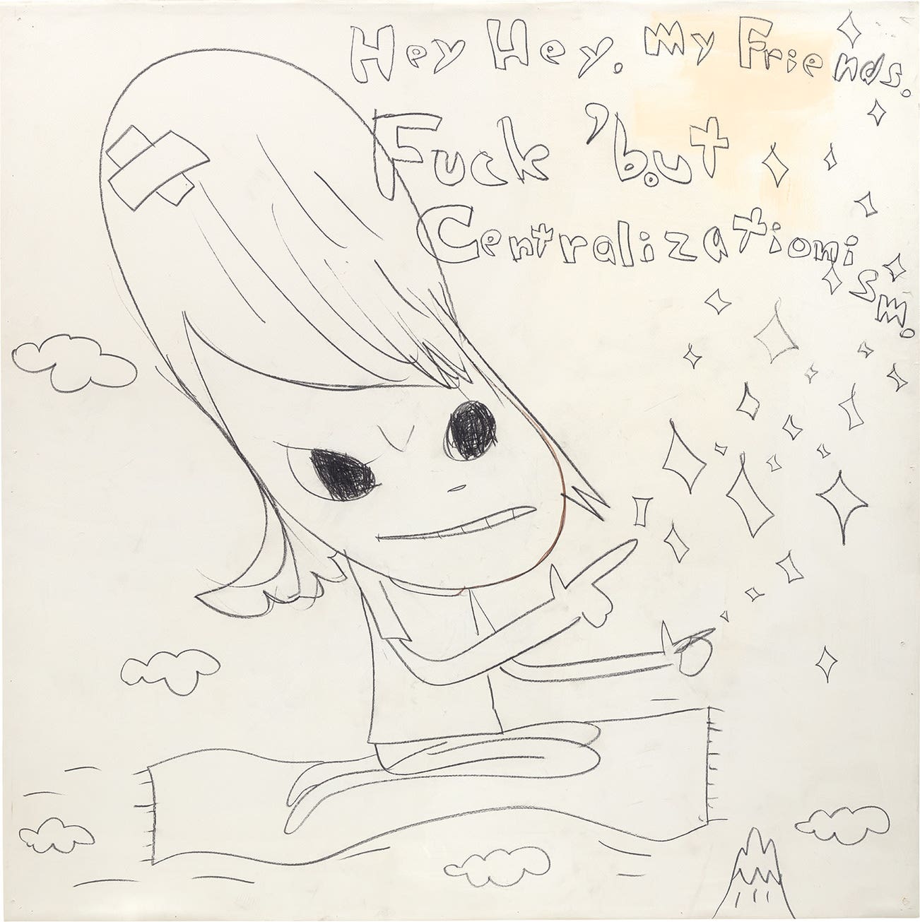colour pencil and acrylic on paper laid on canvas mounted on wood