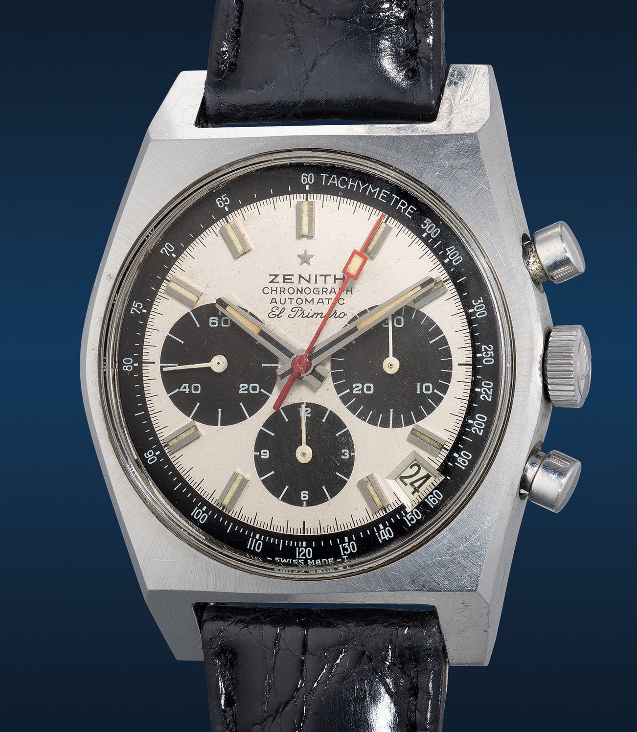 Zenith,「El Primero」型號SP 1301,非常精細,精鋼自動計時鏈帶腕錶,備日期顯示,約1970年製。附原裝證書